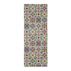 Alfombra perfecta para cocina presente en los estilos de alfombras modernas. Fabricada con tejido jacquard y con una composición principal de: 100% poliéster y pvc en el reverso. La densidad de su entramado es de 0 puntos/m2 y su pelo tiene una longitud de 3 mm.